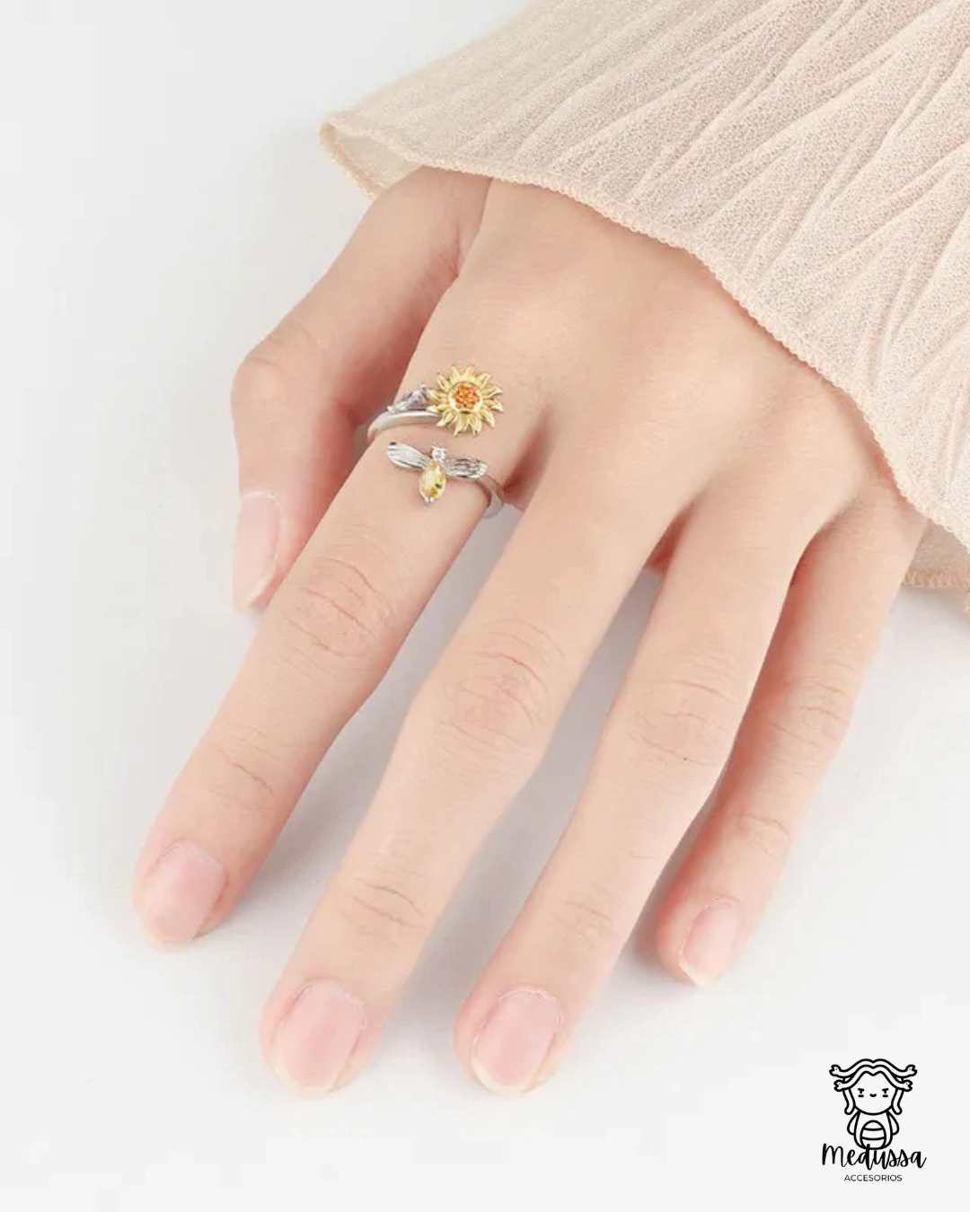 ANILLO FLOR Y ABEJITA GIRATORIO